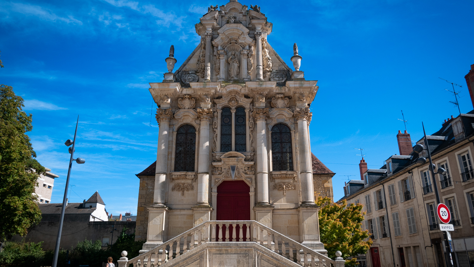 C'est l'une des façades les plus baroque de France tant dans sa composition générale que dans son décor exubérant. Au premier niveau, on accède au portail par un escalier à double volée de marche. le deuxième niveau se distingue par par un abondant décor fait de têtes d'angelot et de cartouches.
