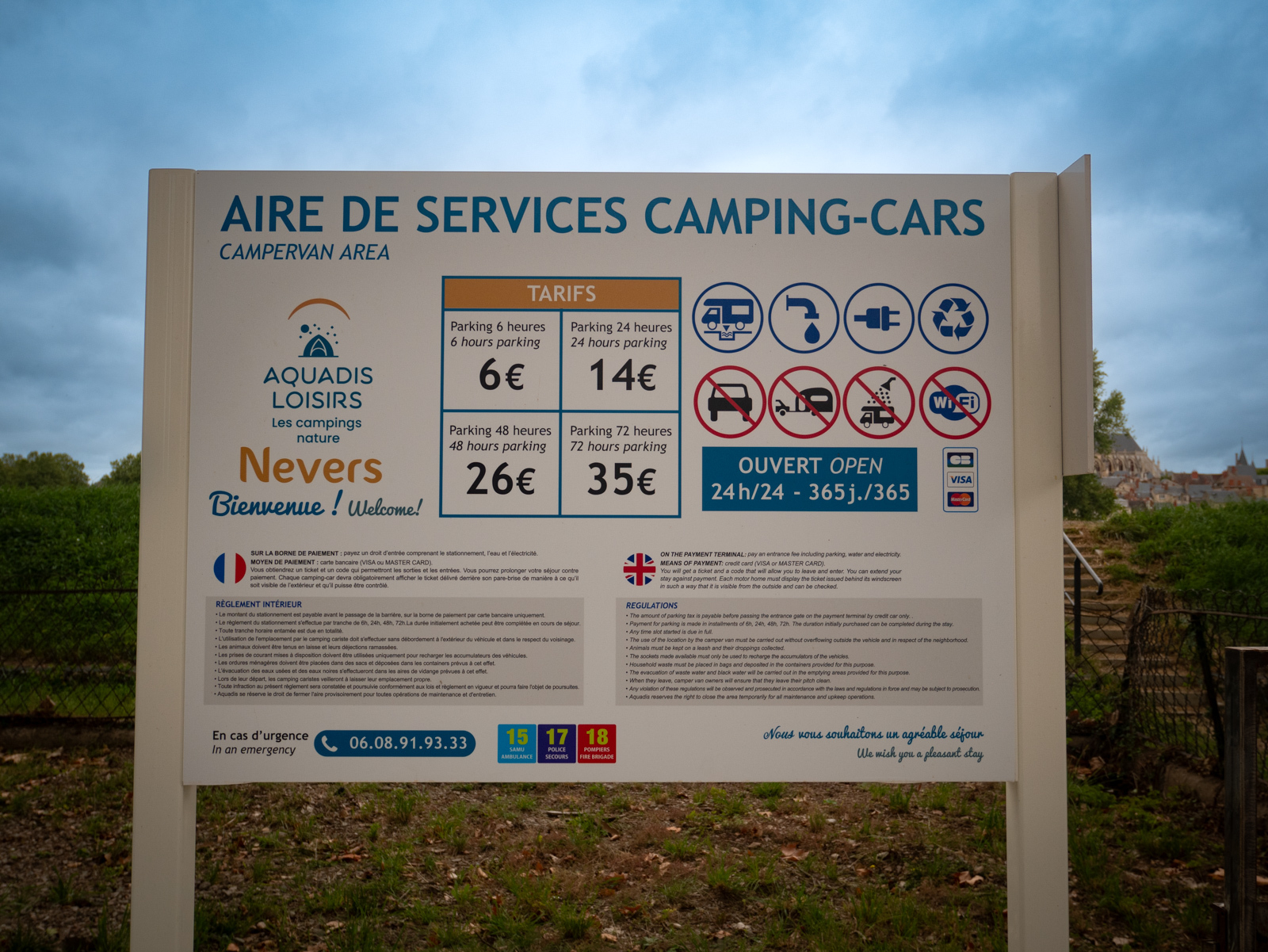 Inaugurée tout récemment, cette aire de camping cars, située au Plateau de la Bonne Dame, juste au niveau du Pont de Loire, accueille 10 emplacements combragés.