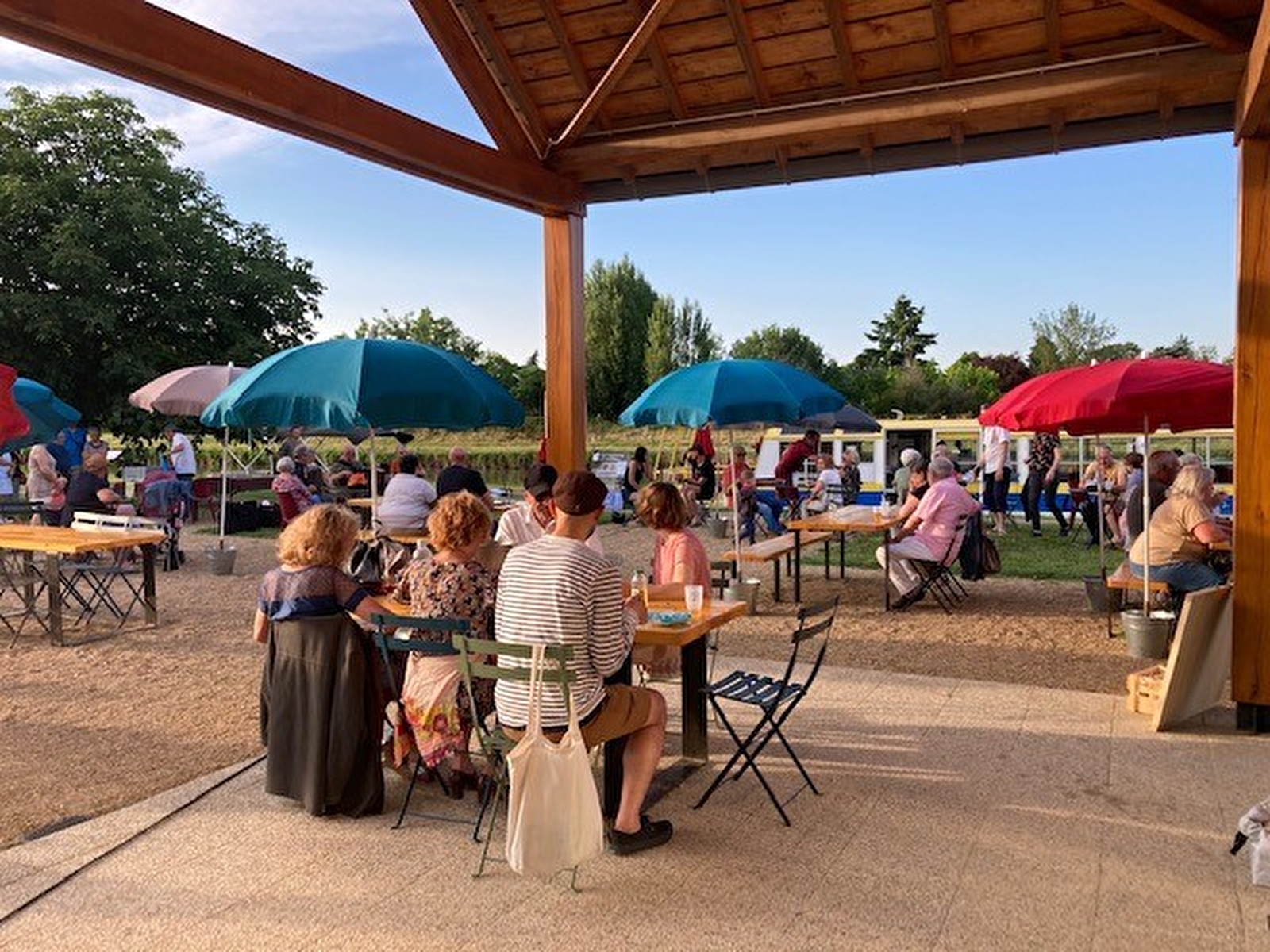 Avant embarquement, ... après embarquement (ou les deux !) venez profiter de notre guinguette et sa terrasse située en contrebas de la double écluse du Guétin.