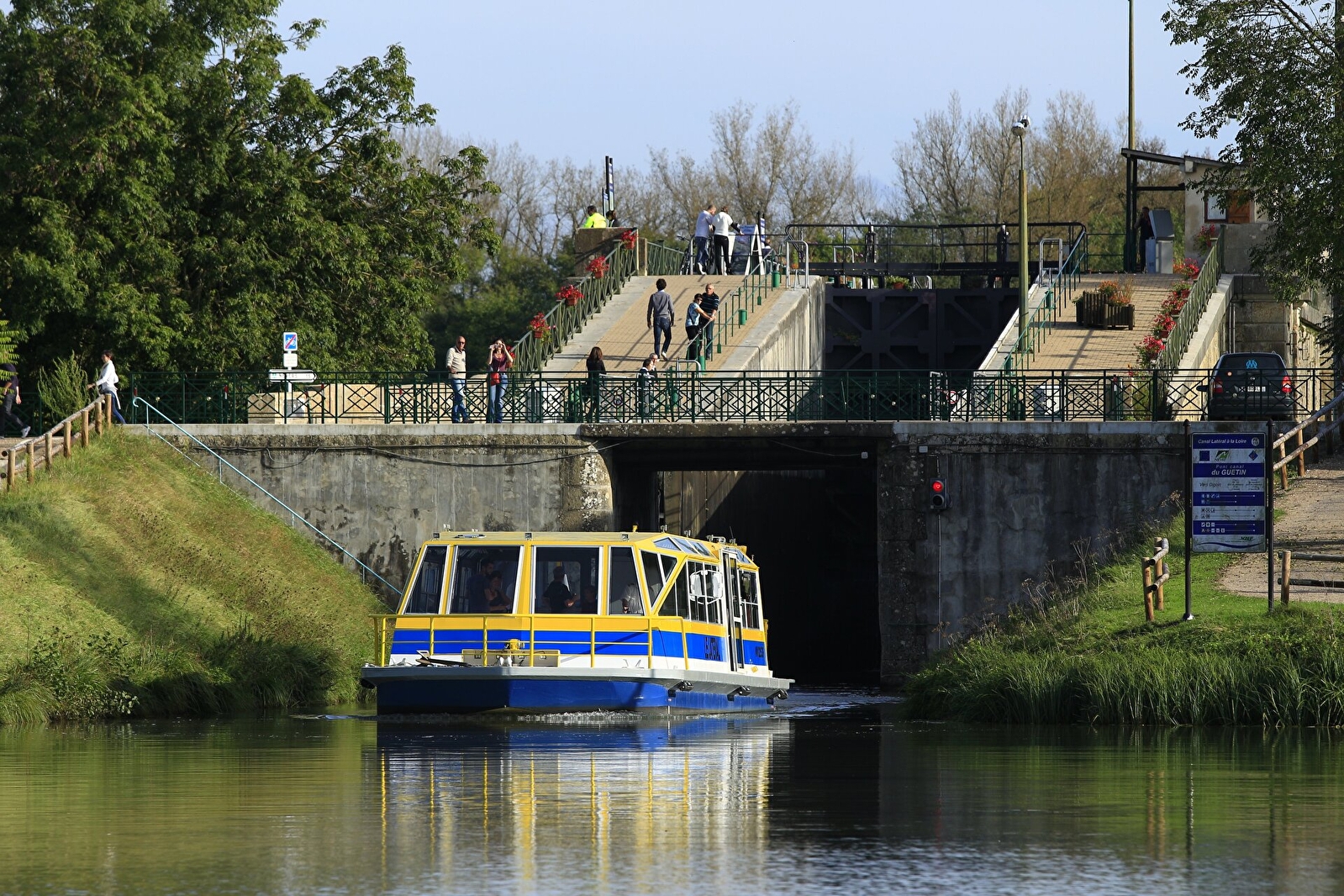 Les croisières empruntent le pont canal du Guétin au-dessus de l’Allier et la double échelle d’écluses à la hauteur vertigineuse.
