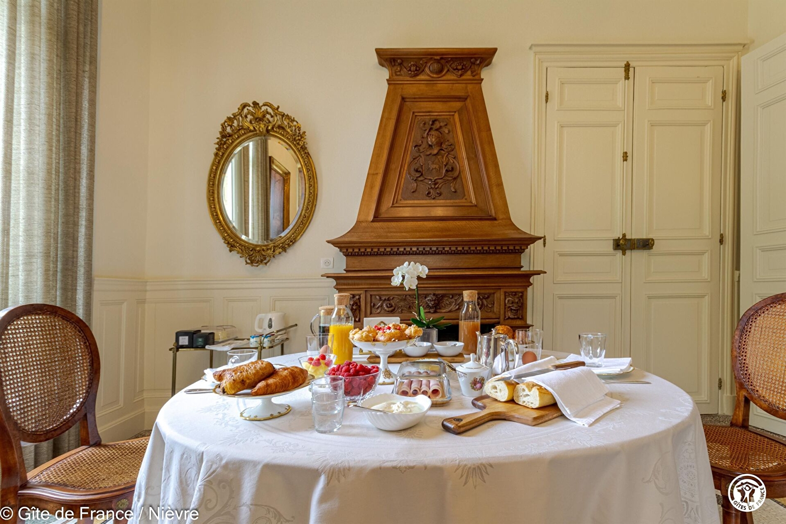 Dans le salon et sa grande salle à manger, vous êtes à l’endroit idéal pour vivre la vie de château, l’espace d’une ou plusieurs nuits en chambre d’hôtes d’exception. Le petit déjeuner est servi entre 08h00 et 09h30.