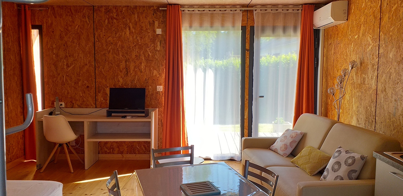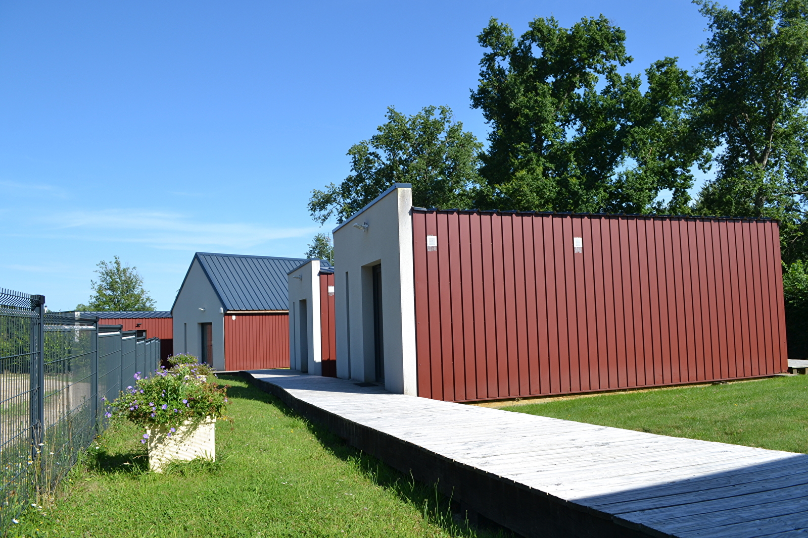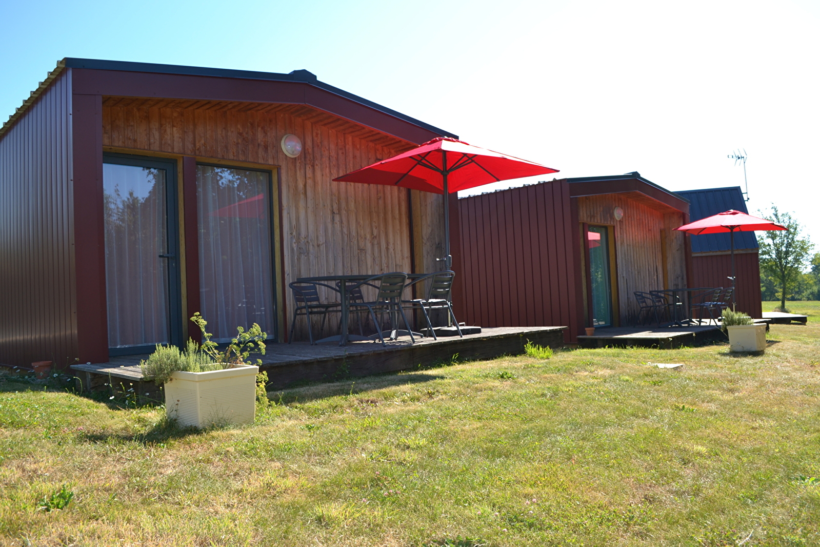 Dans un environnement verdoyant, construits en ossature bois, charmants cottages individuels avec terrasses. Site situé à proximité de tous commerces (750 m environ) et à 10 minutes du centre de Nevers Cottages 2/4 personnes (28 M²°)