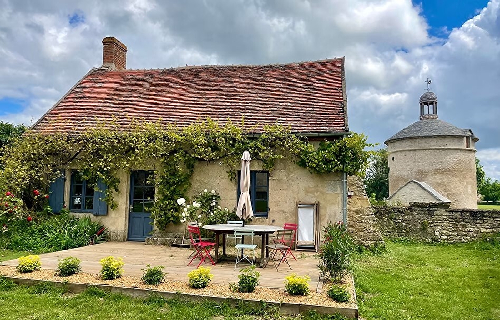 Le gîte du vigneron date du XVIIème siècle et se trouve dans la grande cour du château médiéval du château de Meauce. C’est la meilleure vue sur le château. Une belle et grande terrasse en bois, permet de passer de belles soirées sous un ciel clair et étoilée. Le gite dispose de deux chambres, chacune équipée de sa salle de bain avec douche. Une fois entrée vous êtes dans un beau salon avec une très grande cheminée ancienne et son poêle à bois fonctionnel. De belles dalles en pierre de Bourgogne sont sous vos pieds. Le salon donne sur une belle cuisine authentique avec son évier en plomb, et un vieil escalier à vis en bois. Une petite chambre au RDC avec une baie vitrée sur la campagne.