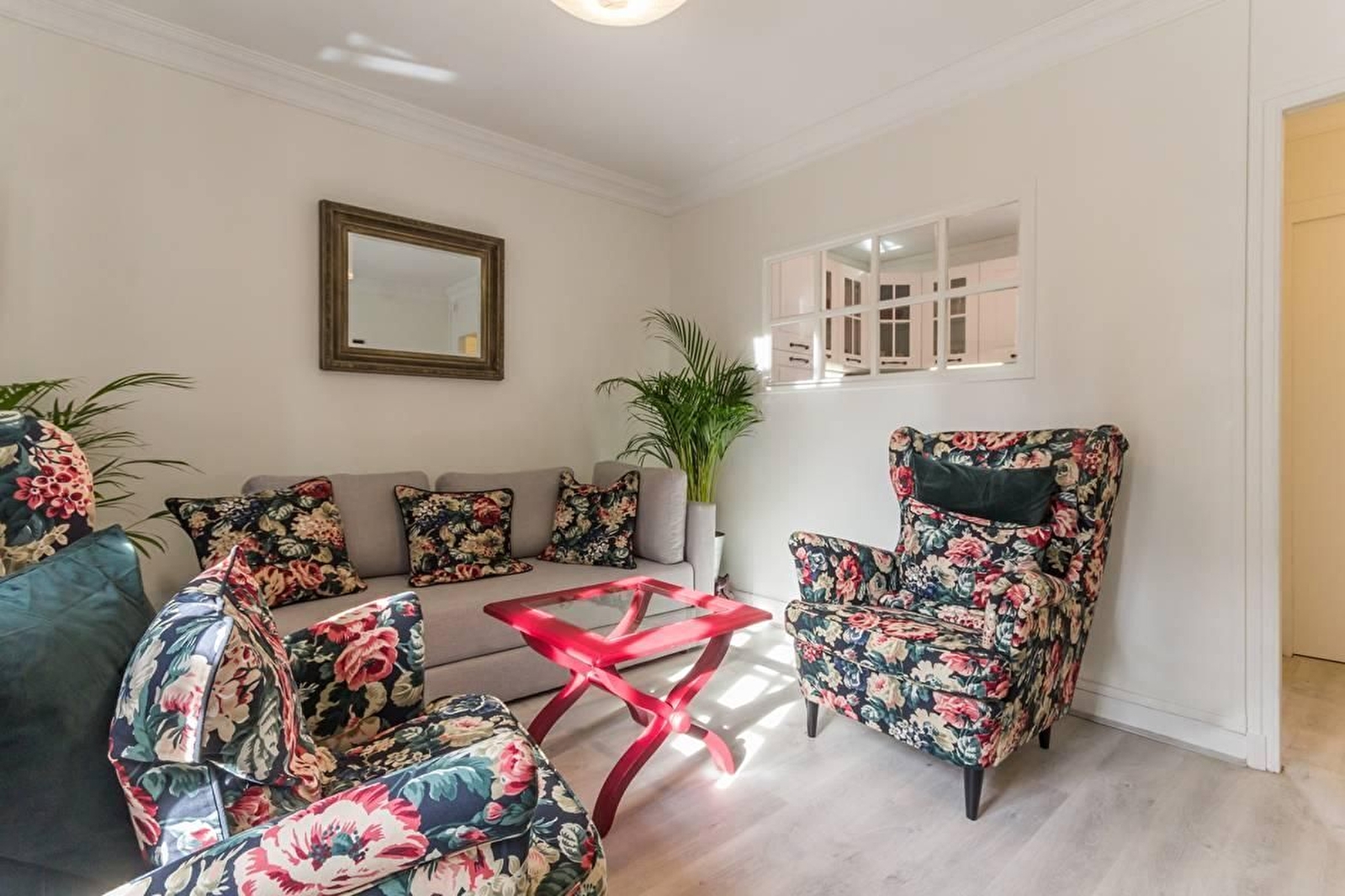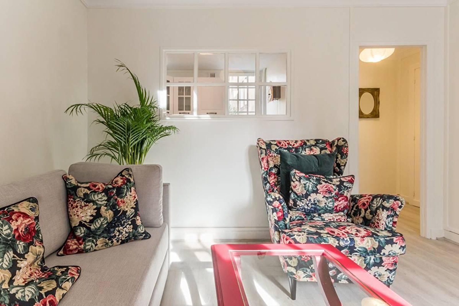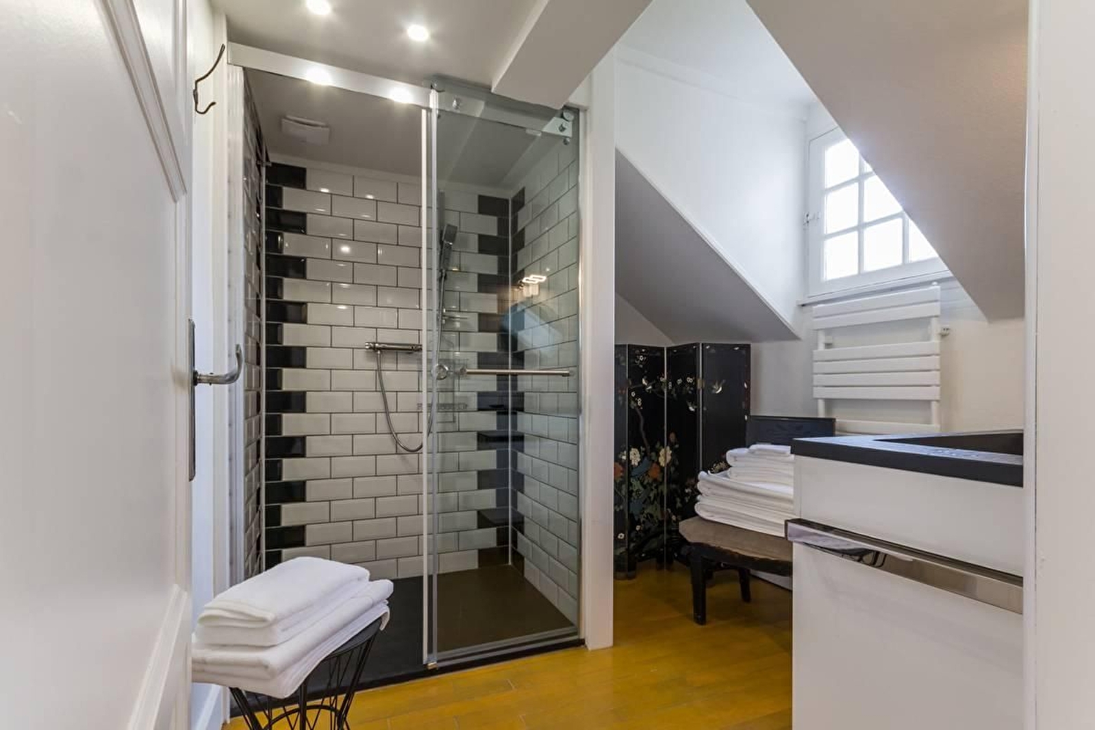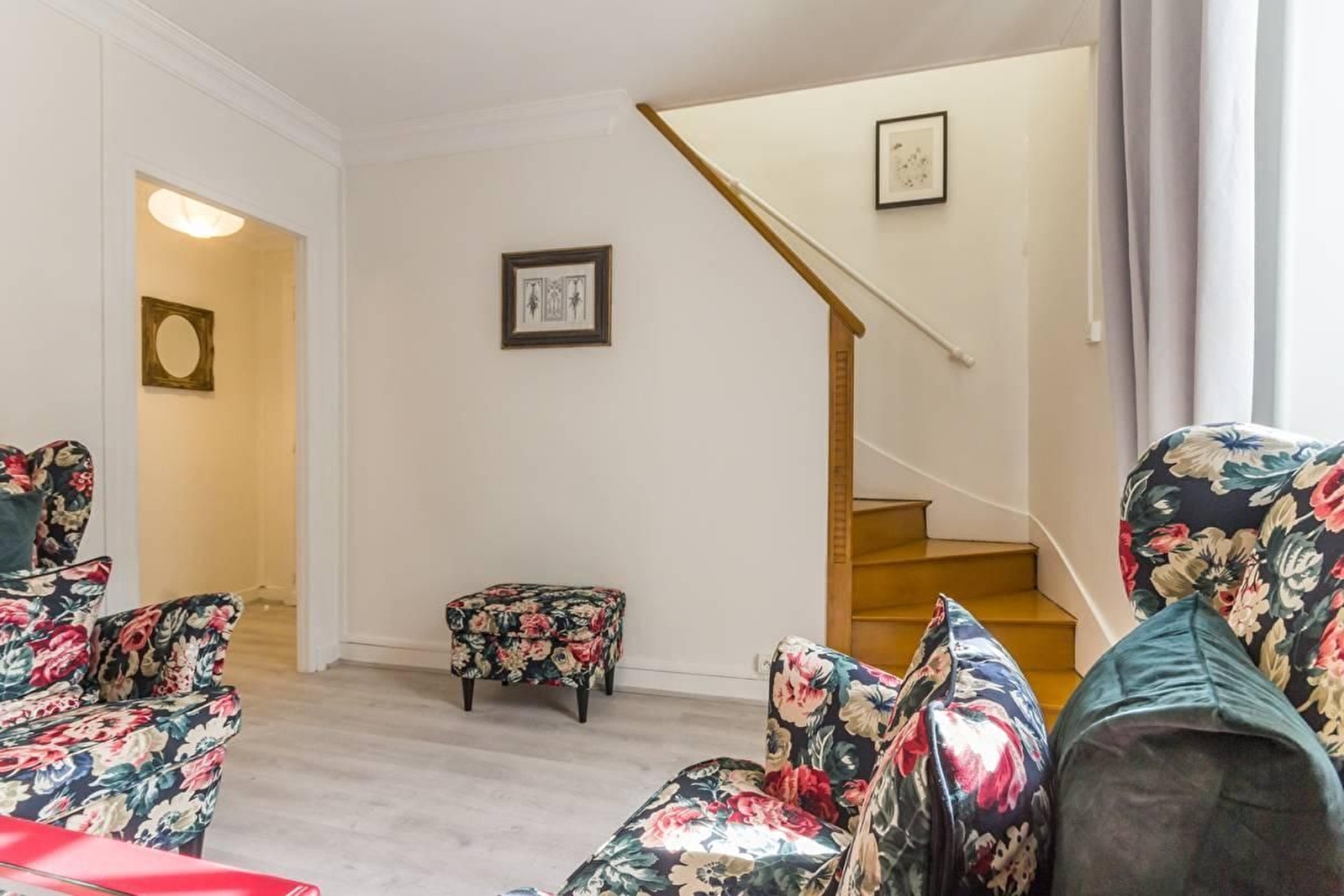 L'appartement est situé au premier étage d'un immeuble bourgeois. Il est facilement accessible par un grand escalier.